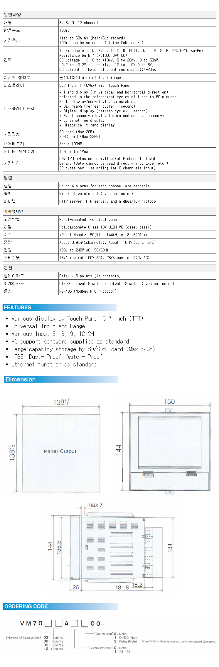 4. VM7000 (최대12채널, 멀티입력, 5.7인치 화면, 터치기능, 종이없는기록계, 이더넷통신)