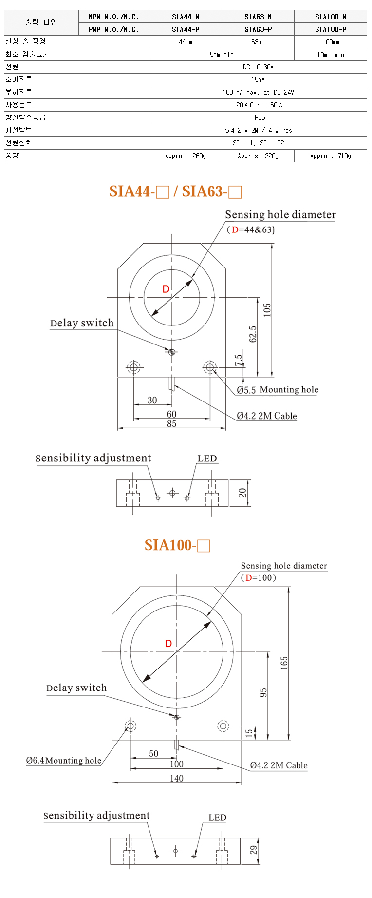 8. SIA 시리즈 (링사이즈 Φ 44~100mm, 최소감지물체 사이즈 5mm, 철, 합금 재질만 감지)
