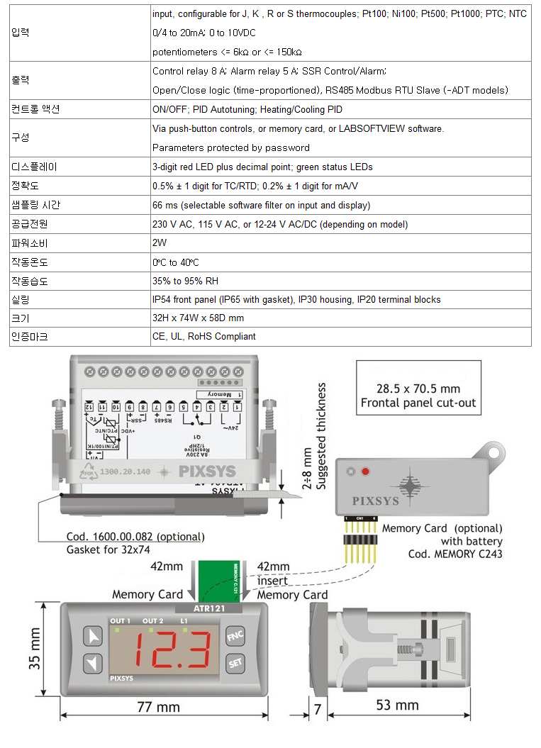 2. ATR 121 (디지털미터, 멀티입력, 3자리 디스플레이, 샘플링 66ms, CE 및 UL 인증)