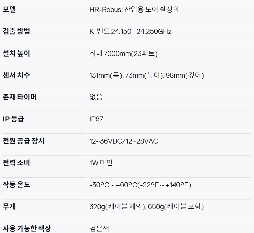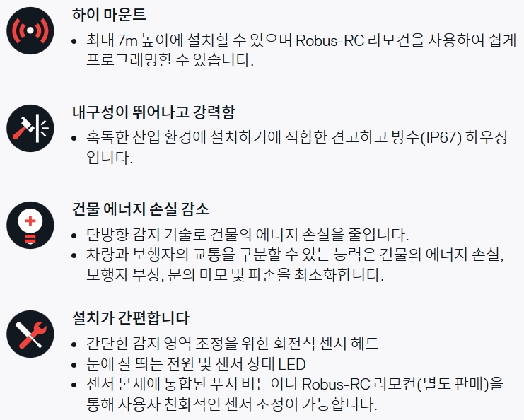 4. 차량감지센서 HR-ROBUS, 설치최대높이 7미터, 차량진입방향설정가능, 눈비 영향 없음
