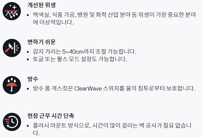 3. 비접촉 도어스위치 ClearWave (무균실, 식품가공, 병원, 화학산업)