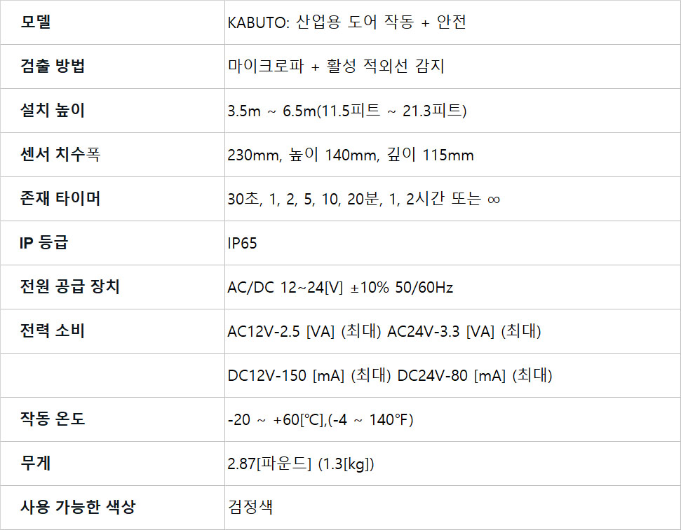 1. 차량감지센서 KABUTO, 설치최대높이 6.5미터, 차량진입방향설정가능, 눈비 영향 없음, 감지폭 조정